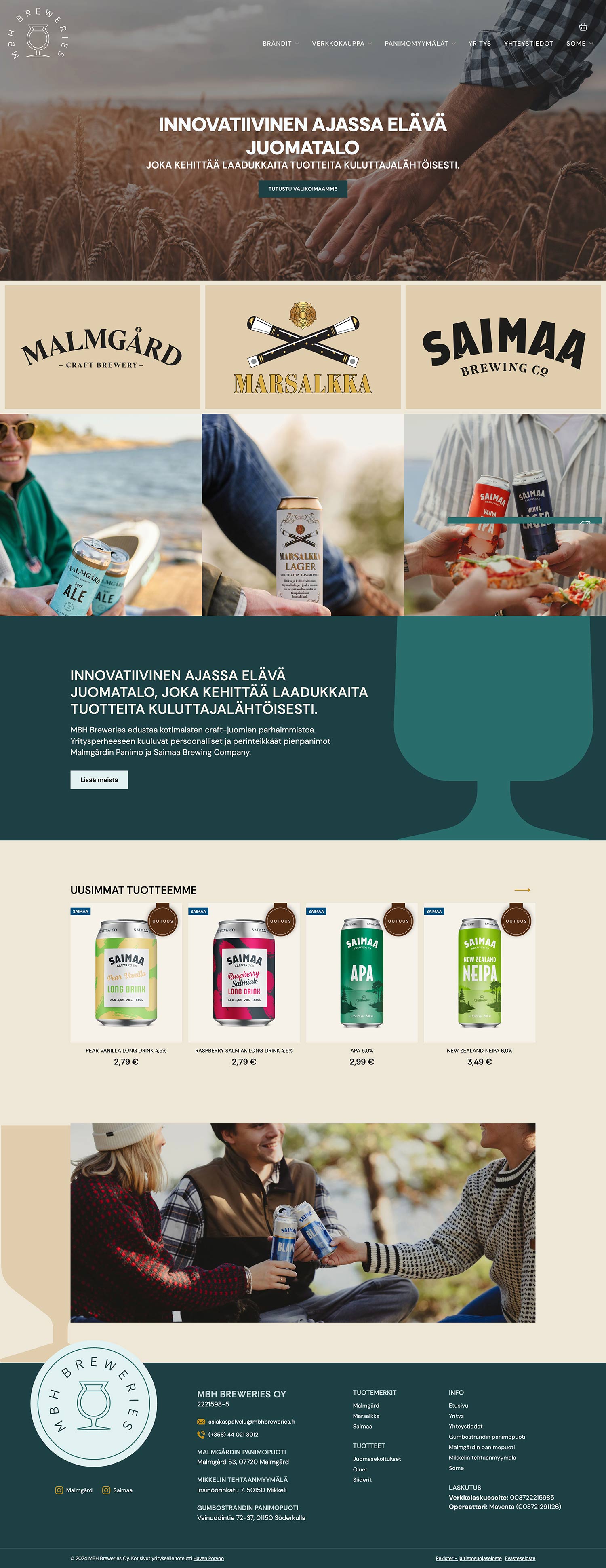 MBH Breweries on suomalainen juomatalo, joka yhdistää Malmgårdin Panimon ja Saimaa Brewing Companyn perinteikkäät pienpanimot. Haven Porvoo ja Creative Day loivat MBH Breweriesille uuden yritysilmeen ja yhteisen verkkopalvelun, joka sisältää myös verkkokaupan tuotteiden noutotilauksille.