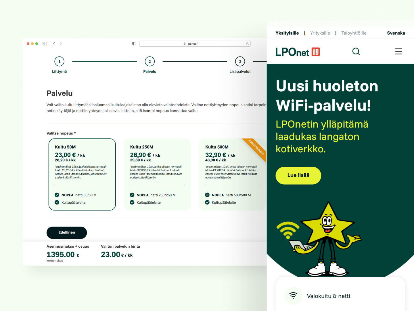 Itä-Uudellamaalla toimiva paikallinen operaattori LPOnet DG on pitkäaikainen kumppanimme, jolle olemme toteuttaneet mm. verkkosivuston, saatavuushaun sekä valokuidun tilausprosessin.