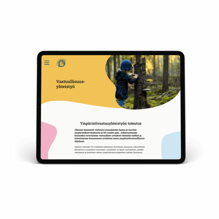 Luontoliiton kotisivut uudistettiin juhlistamaan järjestön 80-vuotisjuhlavuotta ja uutta ilmettä, erityisesti lapsia ja nuoria silmällä pitäen. Markkinointiosakeyhtiö i2 suunnittelema leikkisä ja värikäs visuaalinen ilme toteutettiin WordPress-pohjaisella Elementor-sivurakentajalla, mikä mahdollisti monipuolisten ja toistuvien elementtien hyödyntämisen.